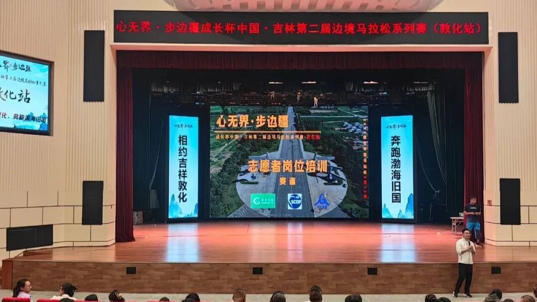 为保障“心无界·步边疆”成长杯中国·吉林第二届边境马拉松系列赛(敦化站)顺利举行,向大赛提供优质高效的志愿服务,9月8日,赛前志愿者培训班在敦化市大剧院举办。