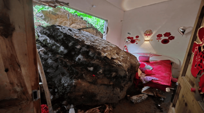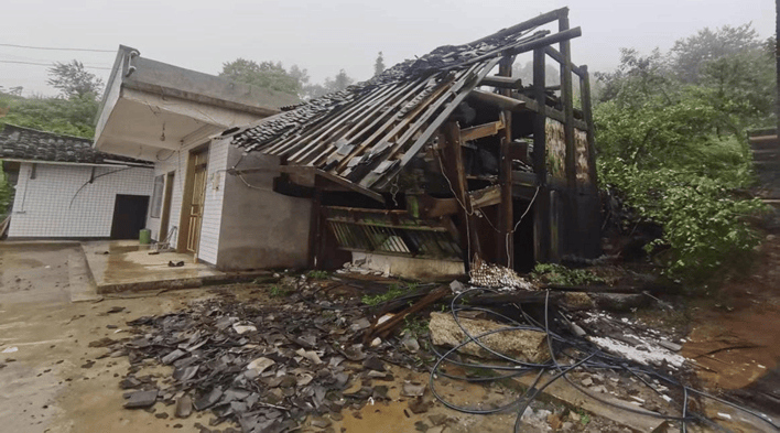 7月8日至9日,泸州市古蔺县遭遇强降雨,金兰街道最大降雨量达201.2毫米。7月9日15时30分,新店子村妇女主任先永艳雨中排查时发现,七社有2户屋后雨水裹挟着泥土石块流出,堆积在房屋周边。先永艳结合日常防灾避险学习培训知识,判断存在滑坡风险,于是立即上报。街道村两级接报后,迅速组织危险区内2户7人转移至安全区域,并对危险区进行隔离警戒。10日6时,七社发生滑坡,方量约200立方米,一户房屋侧墙被滚落岩石冲垮,另一户房屋受损。因提前转移,无人员伤亡。